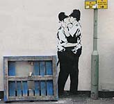 <<Столько разговоров по поводу "Эры милосердия" (слева) Синих носов... Как жаль, что спорящие не видели работу Банкси (справа)...