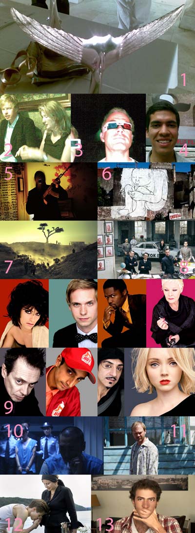 Несмотря на то, что жюри в качестве лучшего конкурсного фильма выбрало "Bai bai bang / Letters from the death row" Kevin'а Feng Ke, тихо и прочуствованно, без клише и сентиментов, повествующем о бессмысленности жизни и надежды ожидания в отделении смертников китайской тюрьмы (иллюстр. 10), подарком для зрителей безусловно явилось творение Sally Potter "Rage", о котором сложно рассказать в двух словах… На самом деле всё просто. Визуальный ряд - молодой blogger Michelangelo снимает на мобильный телефон перед blue-screenом некомментированную серию фронтальных close-up портретов-интервью представителей бизнеса моды. Семь дней, в течение которых происходит два убийства, четырнадцать персонажей, по большей части остроумные и саркастичные монологи и замечательный актёрский набор (иллюстр. 9). Хороши Simon Abkarian в роли дизайнера моды арабского происхождения Merlinа и David Oyelowo в роли детектива Homer. Замечательны supermodel Lettuce Leaf - Lily Cole и бывший военный фотокорреспондент Frank - Steve Buscemi (!). Бесподобны Patrick J. Adams - придумывающий продажные концепции для духов "М" (… например,  "Miracle" или "Motherfucker"), Dwight Angel, John Leguizamo - bodyguard Jed, Eddie Izzard - мечтающий о карьере в шоу-бизнесе pizza-hot-доставщик индийского происхождения Vijay и Judi Dench - курящая косяки  журналистка Mona Carvelli (!). Ну и конечно Jude Law в роли супермодели Minx… И всё это удовольствие стоило по два дня съёмок на каждого персонажа плюс триста тысяч бюджета. Несмотря на то, что в третьей четверти фильм слегка провисает, "Rage" просто нельзя не смотреть.