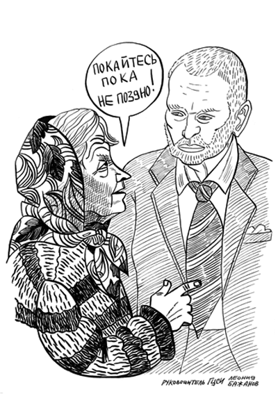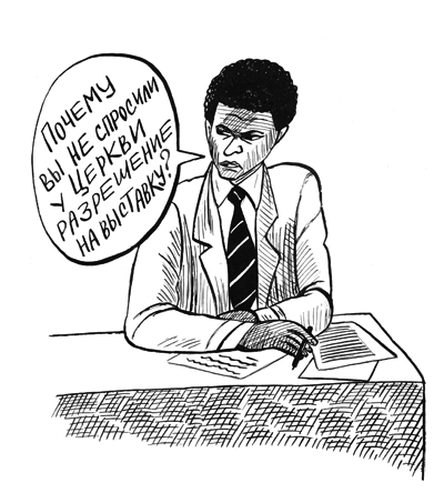Одна их православных активисток, женщина преклонных лет, которая как выяснилось неплохо разбирается в живописи девятнадцатого века, вела душеспасительные беседы с директором ГЦСИ Леонидом Бажановым.