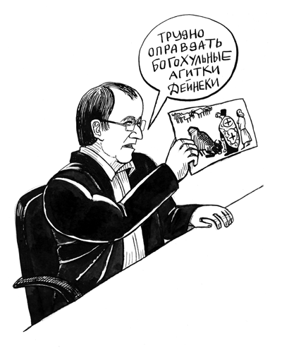 Еще Ерофеев показал суду репродукции антклерикальных работ советского времени из хранилища Третьяковской галереи. Очевидно, таким образом он призывал к терпимости.