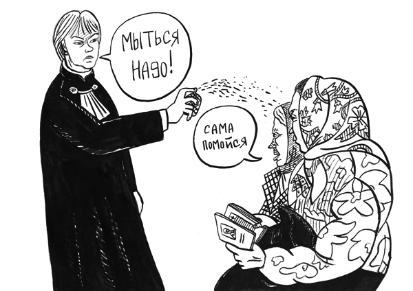 Чувствуя приближение приговора, на заседание снова стали приходить богомольные старушки из группы поддержки Народного Собора.