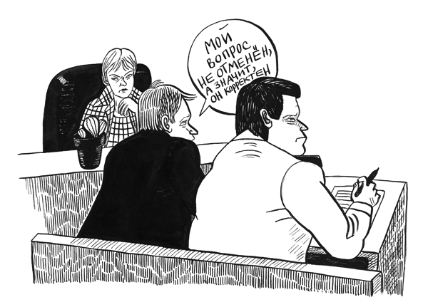 <<Записная книжка #14. Рисунки Вики Ломаско. Таганское правосудие: свидетели дают показания. Комментарии Антона Николаева>