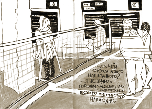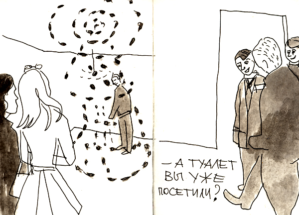 <<Записная книжка. Страница 1. События московской арт сцены в рисунках Вики Ломаско и комментариях Космо Штейнера>