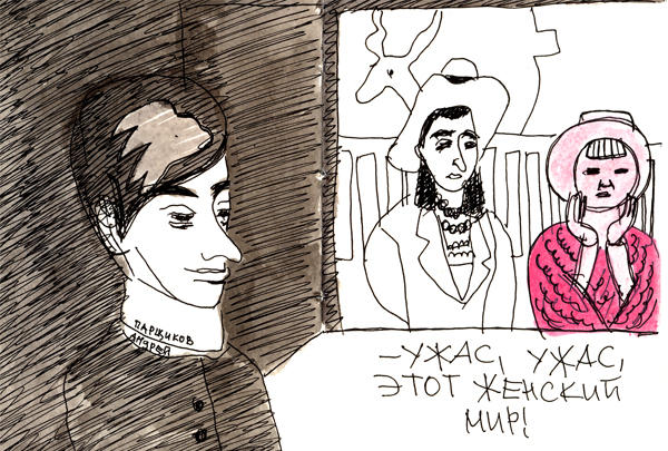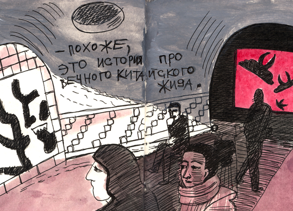 <<Записная книжка. Страница 1. События московской арт сцены в рисунках Вики Ломаско и комментариях Космо Штейнера>