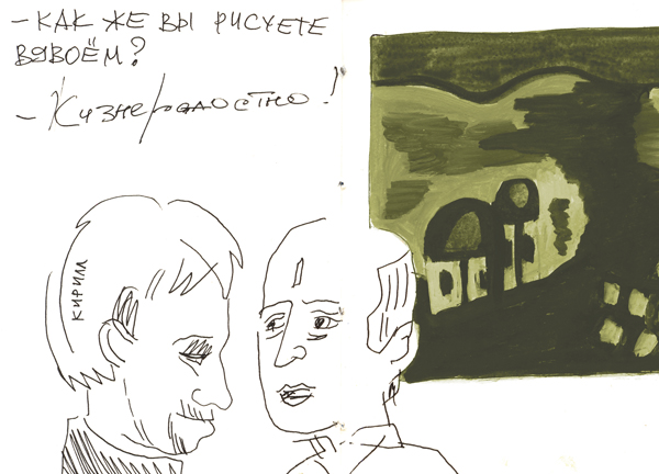 <<Записная книжка. Страница 3.. По бульвару Молодых дарований. Открытия выставок 1-й Московской международной биеннале молодого искусства «Стой! Кто идет?»
