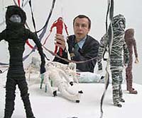 <<19 августа - 14 сентября 2008 года в ММСИ, в галерее Зураб (Тверской бульвар, 9) выставка Якова Каждана "233˚ С". Открытие 18 августа в 19:00. Выставка «233°C» объединит практически все проекты Якова Каждана, осуществленные до 2002 года: «Золотая интродукция к балету «Голем», «Пер Гюнт», «Библейский проект», «Да здравствует искусство Татлина!», «Ноль за поведение», «Бумажная свадьба», «Сон», «Дикие Лебеди», «Communication Food» и даже небольшой перформанс, представленный Тимуром Петровичем Новиковым на концерте «Новой Академии» в 1999 году. |