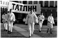 | <"Дорогие Россияне! Здравствуйте. Нас зовут Глюкля и Цапля. Наш проект называется Фабрика Найденных Одежд. Мы пришли в современное искусство прыгнув с моста Лебяжьей канавки. Наш перформанс назывался "Памяти Бедной Лизы". Мы посвятили его всем тем, кому знакомы муки любви. Родина наших фильмов – перформанс" |
