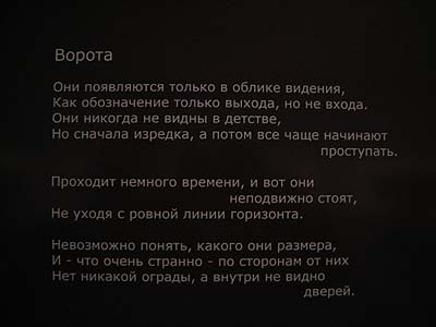 этот проект, прежде всего, именно о феномене искусства в нашем мире. Что такое современное искусство, сколько длится современность и как уверенный традиционализм может быть актуальным в условиях хрупкой и невероятно ускоренной действительности? Возможна ли прямая речь или художник обречен на вечное цитирование? Наконец, способен ли художник, не впадая в бессмысленный радикализм или в радостную сервильность, делать что-то эстетически и этически достойное в ситуации тотального потребления и развлечения? <Акция «Это есть. Этого нет. Это есть», Москва, 2008/ Видео и слайд-фильм, DVD, 2008> |