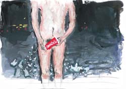 «Стучатся… Открываю. Моей эйфории нет конца. Сосуды сжимаются, сердцебиение учащается. Заглатываю последнюю порцию воздуха. Выхожу в открытый океан, несмотря на час пик. Сумки, портфели, бумажники, ремни, аксессуары, кошельки, барсетки, портмоне, портфели, кейсы, папки, рюкзаки, дипломаты, сумки для ноутбуков – всего этого больше нет вокруг меня. Я пленен необычайной красотой и магической силой своих собратьев. К своему удивлению - я среди них! Это несет мне невероятную удачу и освобождает сознание». Фарид Расулов