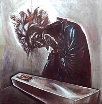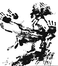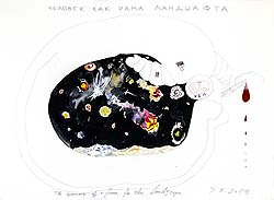 развития, когда эти вопросы-спутники уже не озадачивают. «Жест» - это работы середины-конца 80-х. Такого тебя реально не знают, если и знают, то единицы приближённых. Но именно тогда, в далёкие 80-е и появился первый ручной отпечаток, ставший со временем модулем твоего языка, сублиматом смысла и формы твоего стиля, именно тогда ты открыл для себя природу «жеста». Итак, с чего всё началось? Алексей. Итак! Я действовал весьма последовательно. Закончив Архитектурный техникум в 1985 году с Золотой Медалью и Красным дипломом, почти без экзаменов поступил в МАРХИ, имея тайное желание сделаться художником. Никаких иных целей я перед собой не ставил. Но к 1985 году в институте сложилась обстановка, противоречащая моему замыслу настолько, насколько это было возможно. Часть предметов мне перезачли, потому я занимался по индивидуальной программе: рисунок, живопись, макет, проект, скульптура, история искусств и пулевая стрельба. Многие мои работы вышеперечисленных дисциплин пополняли методический фонд, за исключением, проекта, здесь – высший балл за исполнение и любая другая оценка за замысел. Я вступил в явный конфликт с преподавателями. Они готовили специалистов народного хозяйства, они не знали как оценивать мои проекты, исполненные последовательно в Ар Нуво, Конструктивизме, Ар Деко. Весьма последовательно я изучал историю искусств ХХ века, используя те немногие советские издания, где осуждалось западное формотворчество, лишённое социалистического содержания. В 85-м же, сейчас в это трудно поверить, вышел большой альбом «Постмодернизм в Архитектуре Запада», который пришёлся как раз кстати. Таким образом, я осваивал очередной «изм», конца ХIХ начала ХХ столетия методом погружения. От копирования переходил к подобиям, затем к собственному высказыванию. Кроме того, я поступил в объединение художников-неформалов «Ирис», возглавляемое Сольми, где я познакомился с Сергеем Пахомовым и другими, на сегодняшний день большей частью уже ушедшими в мир иной. Сольми обладал огромной, по тем временам, коллекцией альбомов по Прерафаэлитам и Ар Нуво, и я имел возможность бесконечное множество раз заниматься копированием. Для меня Обри Бёрдсли вообще был первым модернистом ХХ столетия. Он предвосхитил поп-арт, обращаясь к массовому зрителю. И вот парадокс, он являл при этом образ «обособленного человека». Итак, каждые две-три недели ежедневных экспериментов в области графики, и я переходил с помощью советских учебников к следующему «изму». При этом каждый день, по крайней мере, час копировал классическую анатомию из атласа Енё Барчаи. ● Ты ставил перед собой подобного рода задачи, или тебя это влекло неосознанно? Алексей. Это была проектная задача, да я и учился на проектировщика. И мерцающий хаос сознания преодолевался единственным способом - мегапроектом «обособленного человека». Это был мой личный период «бури и натиска». ● Ты жил в Москве, но круг твоего общения преимущественно питерский. Культурные пространства двух столиц не всегда совпадали, иногда очень далеко не совпадали, иногда диссонировали. Но диалог и соприсутствие одного в другом было постоянным. Как тебе удавалось балансировать между ними. Или вообще этой проблемы для тебя не существовало? С чего всё началось? Алексей. В 1988 году я поступил в Первую Мастерскую Индивидуальной Режиссуры Бор