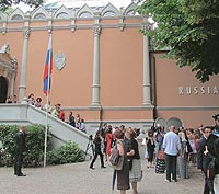 В книге впервые опубликован целый ряд архивных документов: – документы, связанные с организацией выставок в Русском отделе в первые годы биеннале, еще до строительства павильона (в частности, выставки 1897 и 1907 годов, которые готовили Илья Репин и Сергея Дягилев соответственно); – первый (неосуществленный) проект павильона 1910 года; – письмо Малевича c отказом от участия в выставке в павильоне СССР в 1924 году; – материалы об участии художников русской эмиграции за пределами павильона СССР; – материалы о визите президента биеннале Карло Рипа ди Меана в Москву в 1975 году; – материалы, связанные с Биеннале Диссидентов 1977 года; – материалы о первых пост-советских выставках в павильоне (с 1990 года и далее); – фотодокументы из венецианского Исторического архива современного искусства (ASAC) и архива Российской академии художеств; и многие другие материалы из итальянских и российских архивов. Иллюстративный ряд книги состоит из репродукций работ, выставлявшихся в Русском отделе или в павильоне России/СССР. Выходные данные Русские художники на Венецианской биеннале, 1895-1913 Москва: Stella Art Foundation, 2013. 768 страниц, 280 иллюстраций Авторы: Николай Молок (составитель), Фаина Балаховская, Маттео Бертеле, Борис Гройс, Екатерина Деготь, Андрей Ковалев, Мария Кравцова, Джеральдин Норман, Сандра Фриммель. Дизайн: Faro Studio / Андрей Шелютто, Ирина Чекмарева. Книга выпущена в двух изданиях – на русском и английском языках. |