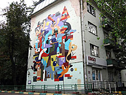 ◄17 сентября в рамках Биеннале уличного искусства «Артмоссфера» на территории парка искусств Музеон появился public art объект испанского художника Okuda. Новая работа Okuda представляет собой трехметровую скульптуру в виде кристалла из цветных модулей и называется Kaos Star. Острые формы и яркие оттенки грандиозной геометрической конструкции будут видны и с Крымского моста, и с противоположной стороны набережной, приглашая всех москвичей оценить звездное высказывание уличного художника. Эта амбициозная инсталляция, напоминающая инопланетный цветок, призвана вызвать реакцию не только у ценителей искусства, но и у простых прохожих — преломляя лучи осеннего солнца в радужных лепестках. |