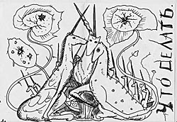 | ◄С 4 сентября 2014 по 2 марта 2015 в Музее Петербургского авангарда (ул. Профессора Попова, 10) выставки «Образы войны. Первая мировая война и художники авангарда». Выставка представляет работы художников-авангардистов, посвященные событиям Первой мировой войны: около 20 плакатов издательства «Сегодняшний лубок», выполненных по рисункам К.С.Малевича, А.В.Лентулова, В.В.Маяковского, Д.Д.Бурлюка с текстами В.В.Маяковского, а также цикл из 14 литографий «Мистические образы войны» Н.С.Гончаровой.. Дополняют экспозицию книги 1914-1915 годов, написанные и оформленные футуристами. |