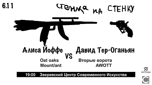 Кураторы: Юлия Манусевич, Ирина Солнцева. Художники: Евгений Гор, Виктор Лукин, Александр Ситников, Игорь Шелковский, Владимир Козин, Кирилл Александров, Петр Белый, Александр Шишкин-Хокусай, художники из группы «Паразит» (Александр Морозов, Герасим Кузнецов, Софья Коханская)