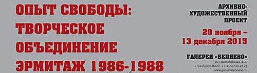 25 сентября – 25 октября 2015 в галерея «КультПроект» (Москва, 2-й Обыденский пер., 12А) специальный проект 6 Московской биеннале "Знаки эпохи, или В поисках идентичности"