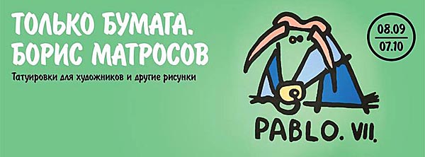 С 8 сентября по 7 октября в галерее "Пересветов переулок" (дом 4, корпус 1, м. Автозаводская) в рамках проекта "Только бумага" выставка Бориса Матросова "Татуировки для художников и другие рисунки">