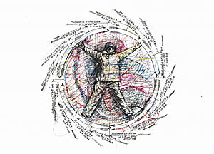 Так в работах автора взаимодействуют, казалось бы, такие далекие друг от друга художественные системы, как каллиграфия, реализм, модернистская скульптура. Зрителю достаточно занять определенное положение в пространстве по отношению к работе и этот разрыв бесследно исчезает, одновременно выстраивая едва уловимые нашим рацио связи между разными временами, традициями, судьбами отдельных людей и их зрительной оптикой. Благодаря этому подходу меняется не только привычный взгляд на графику Рембрандта, но, в конечном счете, искусство становится способом постижения предельного опыта восприятия, часто превосходящего возможности нашего зрения.