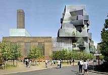 <<Гардиан о планах расширения Tate ModernПочти сразу после реконструкции электростанции появился проект T2, здания рядом с ней (левая картинка). В 2006 году проект стеклянного зиккурата сменили на кирпичную пирамиду. Теперь оценка расходов на её возведение в 215 млн фунтов пугает. Сроки строительства отодвигаются с 2012 на 2014 год>