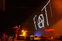 <<2.0 теперь прикручивают всюду - мода, что поделаешь. Вот и граффити 2.0 объявили. Два, похоже, что бывших граффитчика, Roth и Powderly, которые теперь, представляя Graffiti Research Lab, не пачкают туннели, вагоны и стены, а рисуют лазером, с помощью разнообразных хитрых гаджетов проецируют имитацию (!) граффити. Зато куда хотят и очень даже крупно, на небоскрёбы, например, или на Бруклинский мост (на фото). Даже тактику граффитчиков зачем-то имитируют, выжидают каких-то моментов, действуют быстро и даже, совсем уж нелепость, смываются. Times, куда они уже попали, называет их практику high-tech graffiti. К статье прикручено довольно долгое видео - вполне можно оценить, что собой представляют вылазки хай-тек-граффитчиков. Ю. П.>