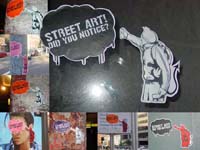 <<Если вам нужны стикеры для очередного бомбинга, их немало на сайте UrbanMedium Дерека Фридмана и Хезер Александер. Или у Заратустра Джеймса, или на сайте "уличного искусства" Марка и Сары из Манхеттена, или на 20mg, или на английском www.streetstickers.co.uk. И обо всех их достижениях написала NYTimes. C адресами. Бешеный промоушен>
