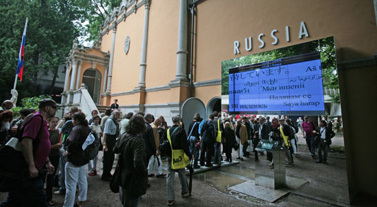 <<3 августа в ИТАР-ТАСС состоялась пресс-конференция по предварительным итогам Российского Павильона на 52-й Венецианской биеннале современного искусства «CLICK I HOPE». Также было объявлено о назначении на должность комиссара Российского Павильона на 2008-2012гг. Василия Церетели и куратора Российского Павильона на следующую, 53-ю Биеннале современного искусства в Венеции, Ольги Свибловой. |