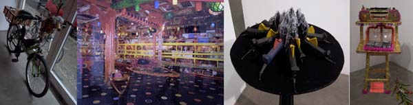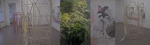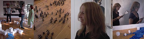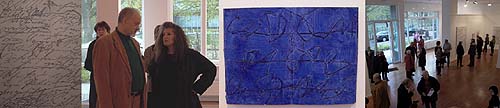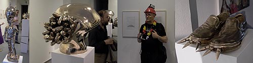две выставки с участием русских художников. Первая - в галерее "HERRMANN&WAGNER (www.herrmannwagner.com) -инсталляция сестер Натальи и Марии Печатниковых. Остроумная инсталляция с использованием голубых нитей большого числа белых кубиков с голубыми вкраплениями и малюсеньких макетиков елок, но также с картинами сделанными по принципу "двойственности". Сестры являются близнецами, они вместе рисуют и в их картинах часто присутствуют их автопортреты. Это первая их выставка в Берлине и первая инсталляция в сочетании с живописью в этой галерее. ![]() На фотографии инсталляция и одна из сестер Печатниковых (вторая точна такая же). < Следующая выставка, курируемая Романом Минаевым и Зоркой Ледранавой, уже была показана в Москве в ГЦСИ, в Македонском музее Скопле, в центре современного искусства в Словакии. Сейчас она доехала до Берлина и проходит в "BETHANIEN"(www.kunstraumkreuzberg.de). Место достаточно альтернативное и поддерживающее современное независимое искусство. ![]() На фотографии уже знакомые московскому зрителю картины и объекты. <В субботу 25 июня открылось две выставки в галерее "Michaela Schultz"(www.galerie-schultz.de). На выставки Norbert Bisky и Joel Morrison, несмотря на футбольный матч Германия - Швеция, народу пришло очень много. Особенно на Norbert Bisky, сына известного политика, который благодаря галерее Шульца еще и модный художник. Немецкий "Виноградов&Дубасарский" рисуют картины без иронии, но за большие деньги. Цена маленьких работ были от 60.000 евро. ![]() На фотографии сам художник в окружении своих работ. Joel Morrison оказался очень хорошим скульптором. Качество бронзового литья великолепно, и не удивительно, что часть работ была тут же раскуплена. На выставке были также представлены рисунки. ![]() На фотографии скульптуры и странный человек с видеокамерой на каске, не удивлюсь, если его нанял галерист для создания спортивной атмосферы. <<Michail Molochnikov из Берлина> |