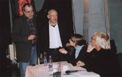 <<1 марта  2005 года  в клубе на Брестской в рамках 1-ой Московской Биеннале Современного Искусства состоялась встреча с американским художником Джозефом Кошутом/ Joseph Kosuth ( January 31, 1945)