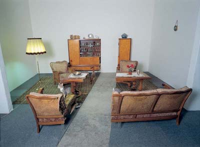 6. Виа Левандовски. "Берлинская комната (Разделенное страдание - это уже не беда, а полбеды)". 2002. Самая впечатляющая работа на выставке - комната, будто распиленная пополам. Распилено все - стены, диван, стол, рюмочка и даже кошка. Простая, но очень зрелищная инсталляция, посвященная, понятное дело, берлинской стене.